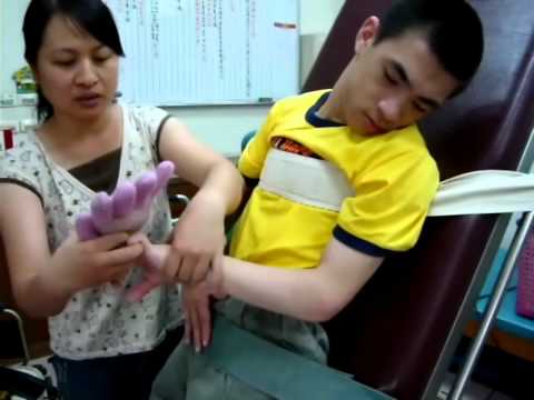 2. 將使用者手指依序拉直後,藉由手套的手掌部分將手指擺位在鬆開的姿勢。